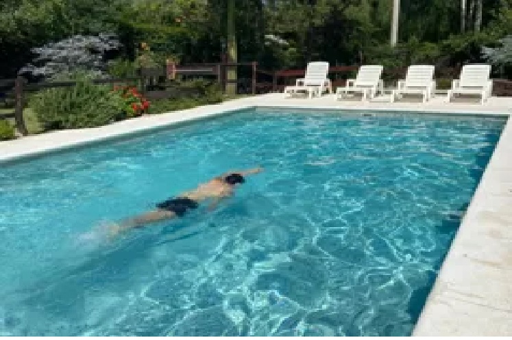 Piscina de amplias dimensiones (10 metros de largo por 5 metros de ancho). Profundidad de 0,6 metros a 1, 6 metros.